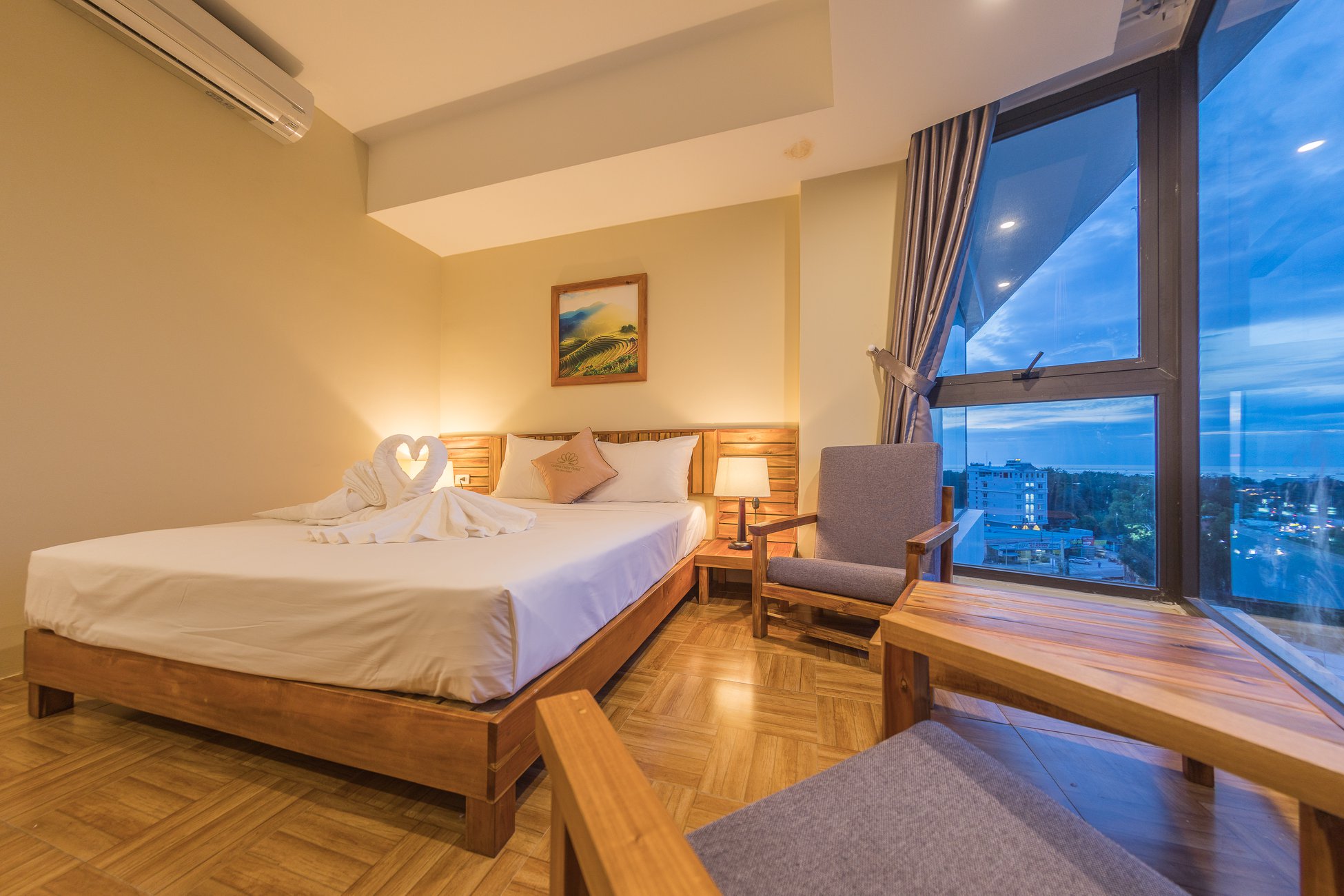 Golden Daisy is a 3-star hotel, that has 55 rooms. Located on Tran Hung Dao Street, facing the famous Bai Truong beach, the back side is bordered by mountains, surrounded by green space. Golden Daisy Hotel is located in the centre of Duong Dong Town, providing great convenience for guests when travelling, dining, shopping or sightseeing. Designed and built in a unique and creative style, Golden Daisy Hotel promises to bring you a new and exciting feeling when staying here