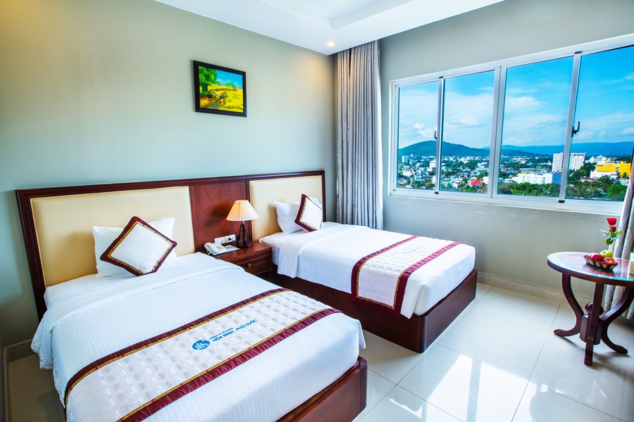 Located in the centre of Duong Dong ward, Phu Quoc City, with its back against Ba Keo Hill, facing the sea, Hoa Binh Phu Quoc Resort is a spacious, modern, 4-star standard resort with nearly 200 fully furnished rooms. You only need 5 minutes to walk to the beach and immerse yourself in the clear blue water or explore the bustling night market in just 10 minutes on foot.