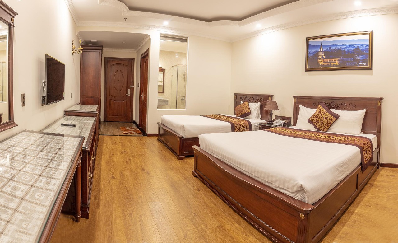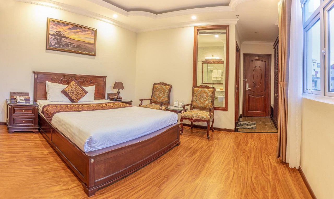 Mai Vang 2 Hotel is a 3-star hotel, has a shared lounge, city views, and 50 luxurious rooms, combined with the uniqueness of Da Lat paintings in each room. All rooms have airy windows to receive natural morning sunlight and an open space to watch the starry sky at night.